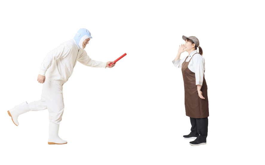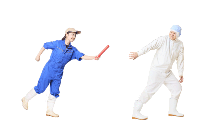 もう一つ大切にしているのが「つなぐ」ことです。牧場のみんなが育てたおいしい豚肉を、先輩方が長年かけて作り上げてきたレシピと手法でおいしい商品にする。そうすれば、次に続く営業の方が自信を持って販売できる。「おいしさ」をつなぐために、技術を磨き、もっと手に取りたいと思ってもらえるよう、味はもちろん、色や形にもこだわっています。こうして頑張れるのは、自分の手で作った商品が、食べた人の喜びにつながっていくことを実感できるから。工場で働く私たちのもとにも、お客様の声はしっかりと届いています。