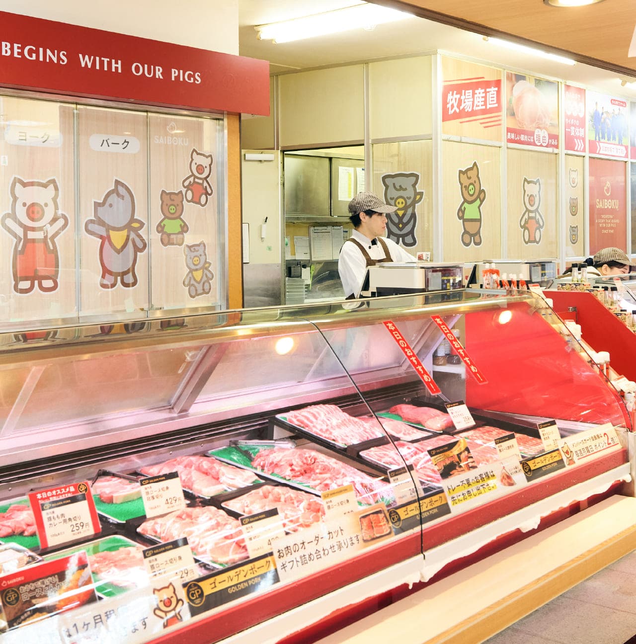 売り場で働く私たちの使命は、牧場、工場とつないできた商品の魅力をお客様の手元に届けること。そのために大切にしているのがお客様との会話です。精肉を対面で量り売りするシーンや店頭で接客する際には、おすすめの商品や食べ方はもちろん、牧場で豚さんを育てる際のこだわりや、工場での商品づくりに込められた想いを添えてお伝えするよう心がけています。